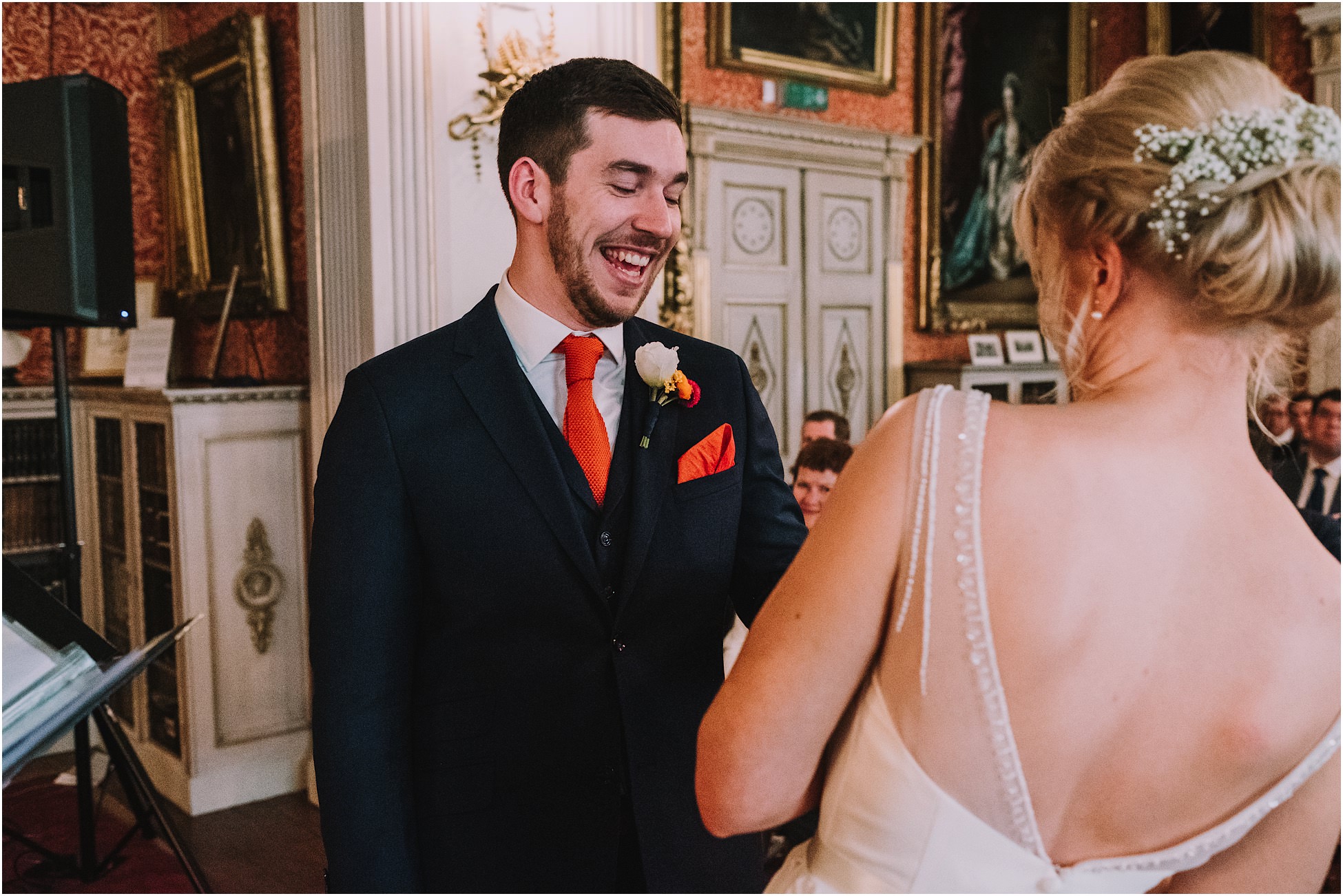 So, back to Anna and Tom. These guys held their wedding ceremony at the beautiful Tabley House in Cheshire. I’ve photographed here before and always love it. It’s a gorgeous ceremony room, full of light and beautiful antiques. The surroundings are glorious too, with views over the Cheshire countryside.