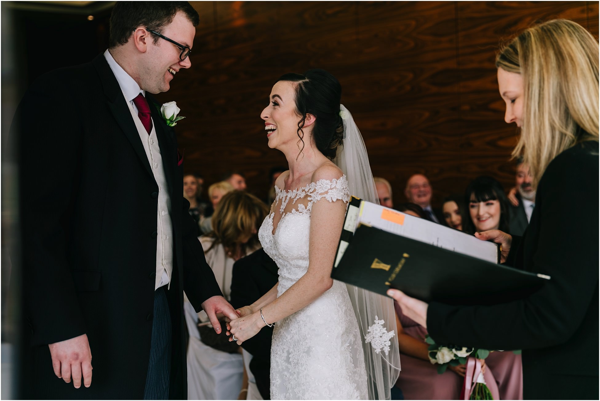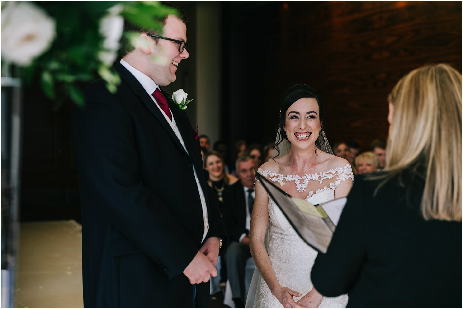 At this point the sun was shining, there were just a few grey clouds gathering on the horizon but nothing to show that snow was on the way! By the time Melissa walked down the aisle with her Dad the sky was dark and the snow was coming down thick and fast. That didn’t stop the couple laughing and giggling their way through the ceremony, it was really lovely to see how much fun they have together.