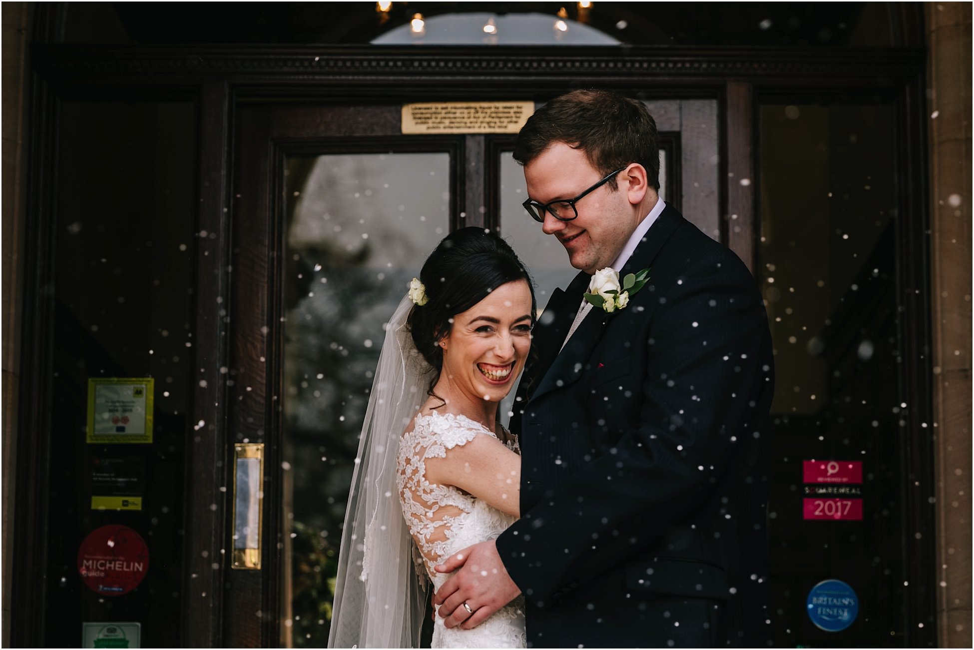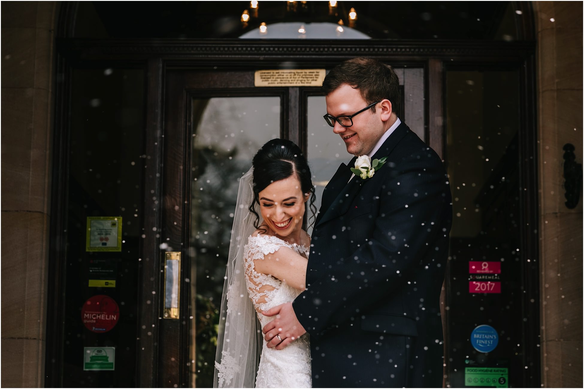 And guess what, ceremony over, the sun was out again! This was to be the pattern for the whole day, we did a lot of jumping outside for portraits whenever the snow stopped! Although Melissa and Sam braved the snow for some brilliant photos together.