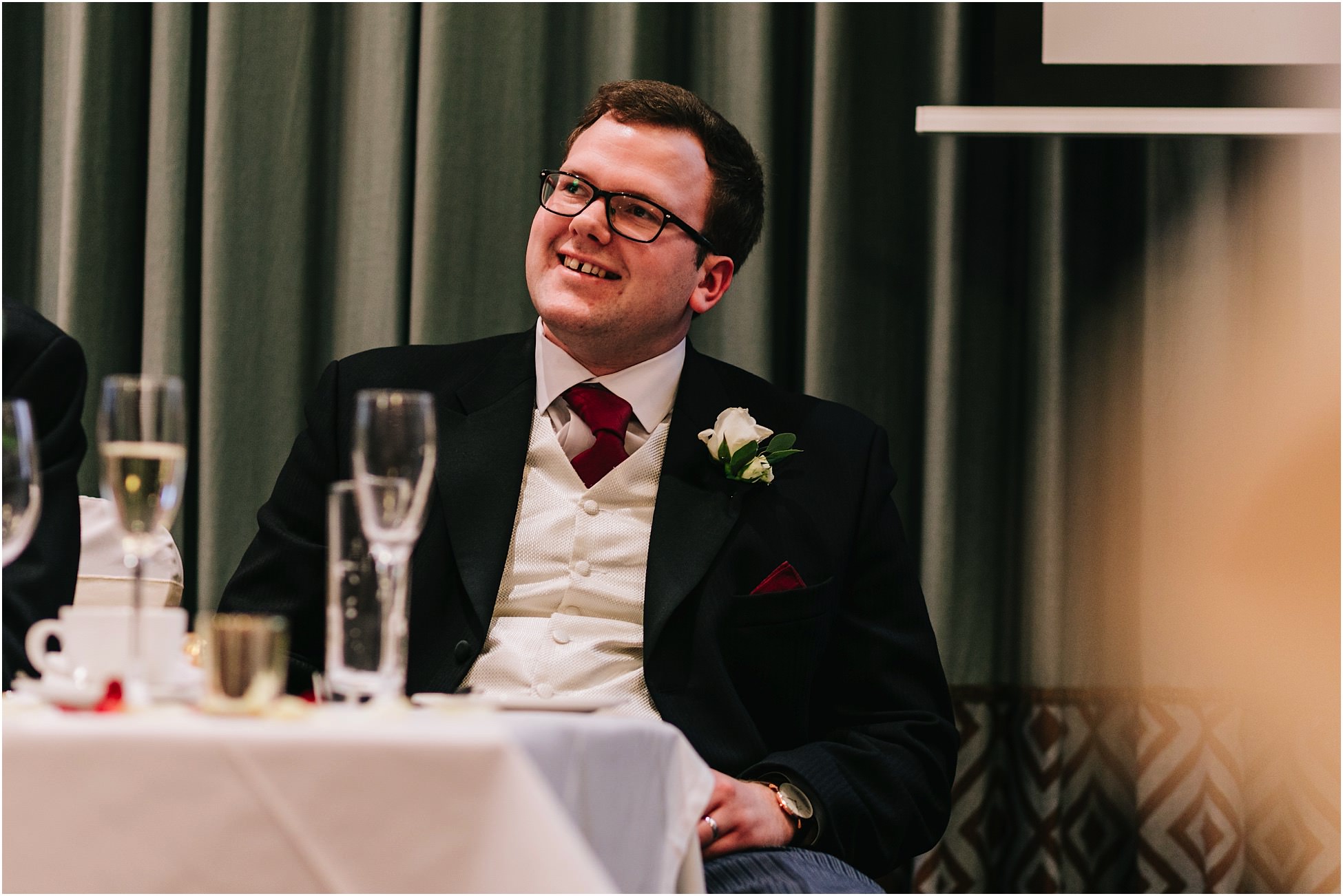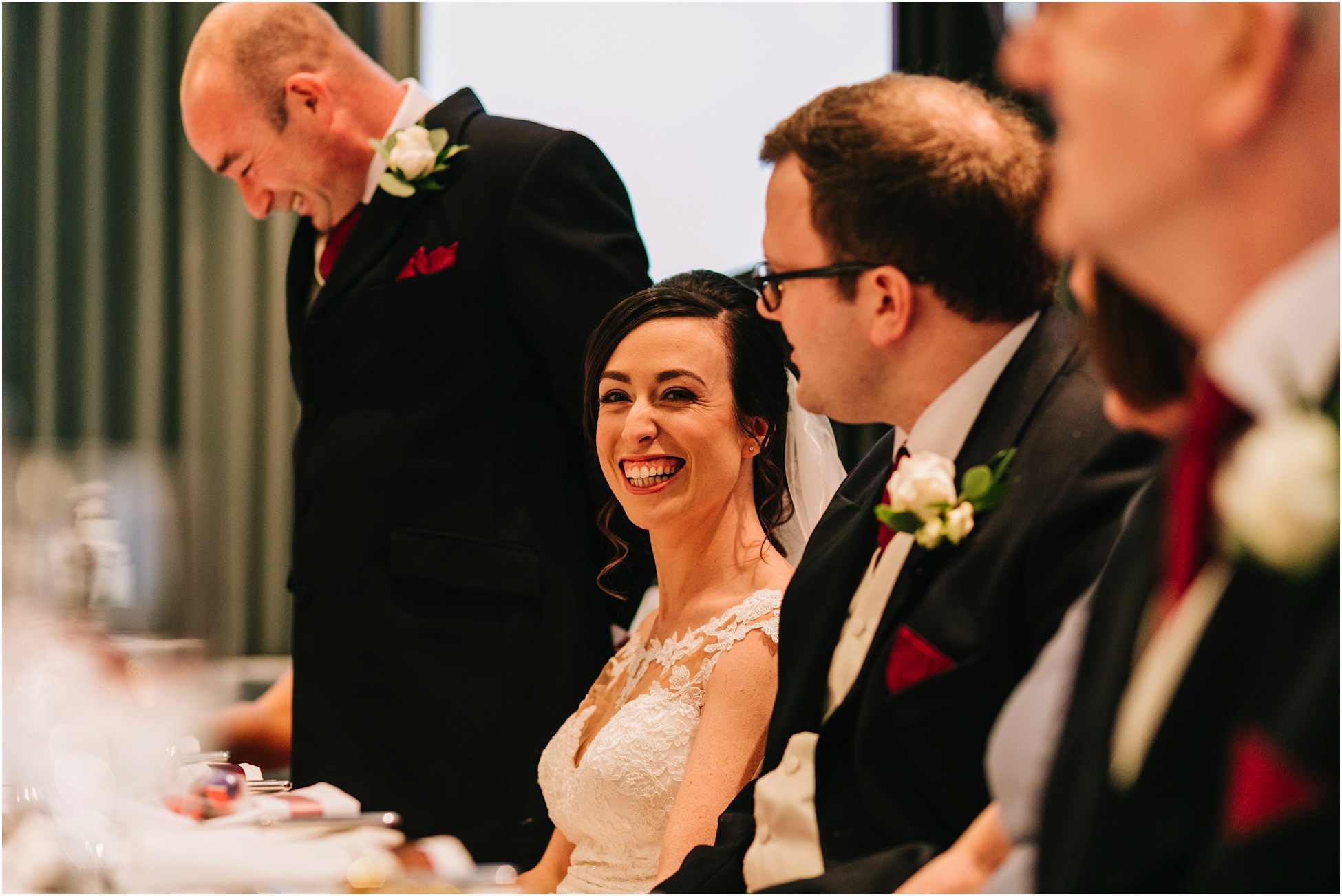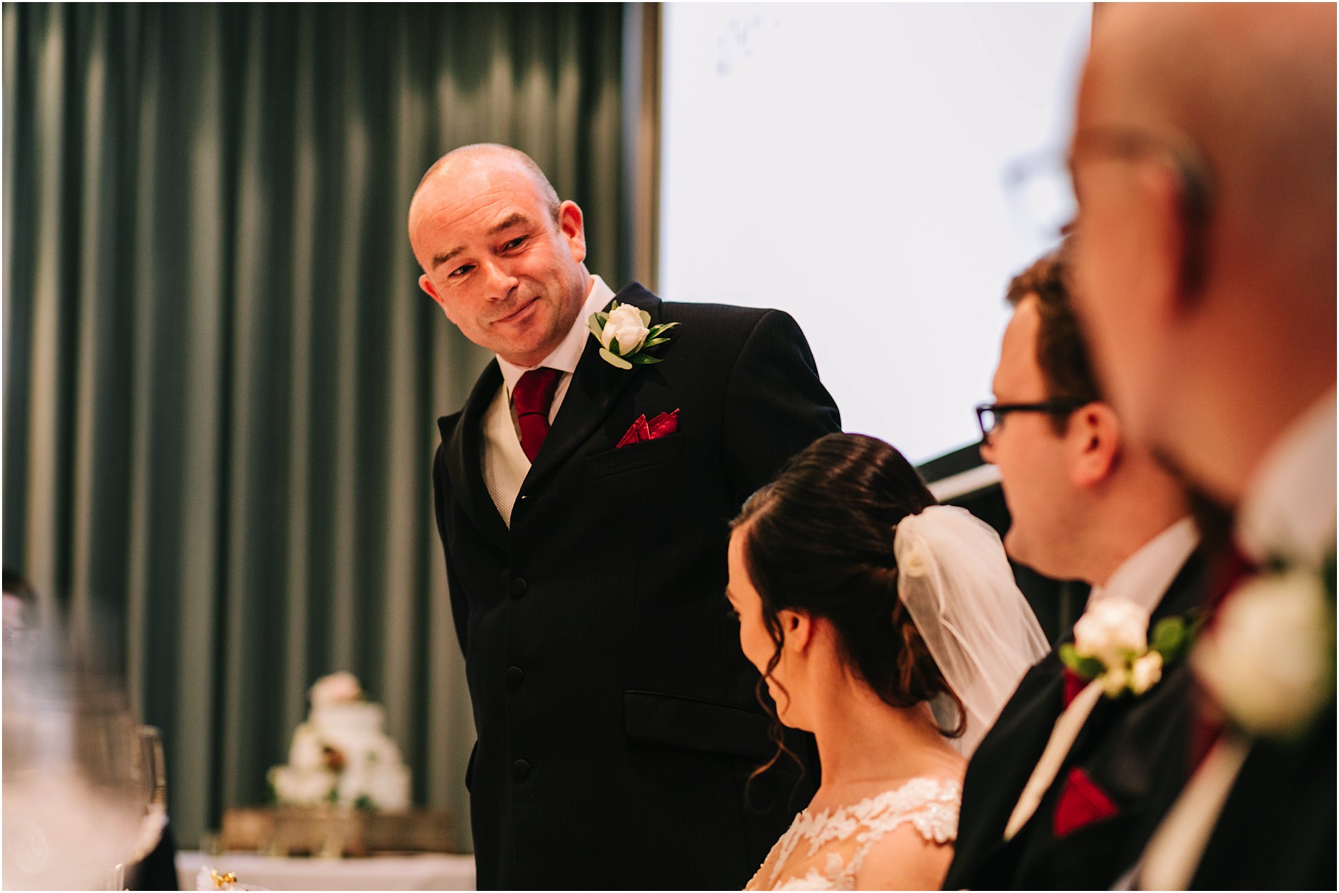 Moments before Melissa was about to walk down the aisle the registrar tapped me on the shoulder and pointed to the window behind her, Sam and I looked round and saw a wave of snow heading across the fields at the back of Rookery Hall straight for the venue! We spent the day dodging snow showers but it just shows how happy, relaxed guests can make for a perfect wedding day, whatever the weather.